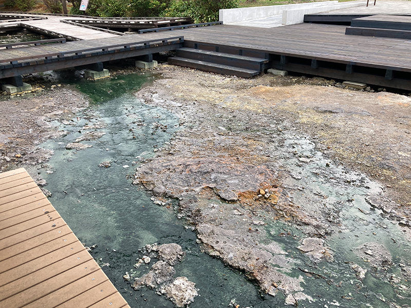 また、特にpHが1.8で強酸性であることや二酸化炭素,硫黄を多く含むのも特徴です。多くの温泉地を訪れた中で、このようなの特徴をもつ泉質に出会ったことは川湯温泉以外にはありません。これまで、殺菌作用や糖代謝に有効であることが報告されていますが、この温泉の有効性をサイエンスの力で解き明かすために早速研究に着手しています。今後,新たな知見が得られた時には報告して参りたいと思います。
